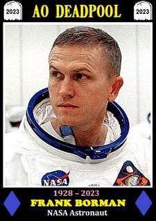 176. Frank Borman Died November 7, 2023 Age 95 2 hits by Eternity Tours and Exuma 5 points (2 for hit + 3 for duet) |