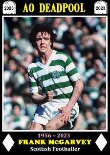 Frank McGarvey Died January 1, 2023 Age 66 12 hits by Allen Kirshner, Banana, Bony Old Hag's Scythe, Book, Captain Chorizo 2023, Faucheuse, gcreptile, Gerard Tierney, Morlock, Old Crem, Pan Breed, and Salmon Mousse 11 points |