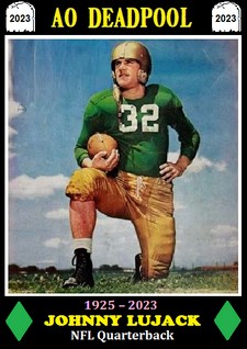 146. Johnny Lujack Died July 25, 2023 Age 98 3 hits by Go the Distance, Pat Peeve, and Worm Farmer 3 points (2 for hit + 1 for trio) |