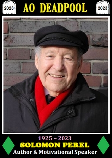 Solomon Perel Died February 2, 2023 Age 97 3 hits by Garrett, Jesse's Girls and Boys, and Kathi 3 points (2 for hit + 1 for trio) |