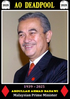 8. Nurul Qomar Died January 8, 2025 Age 64 1 hit by gcreptile 16 points (11 for hit + 5 for solo) |